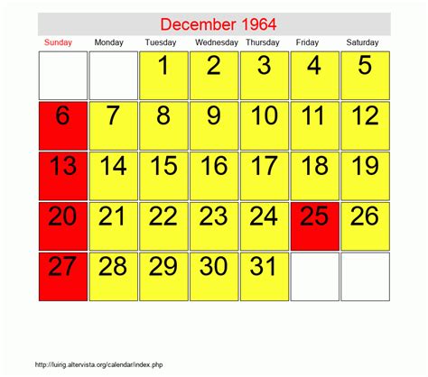 Calendar December 1964. 3063 weeks and 2 days ago: Web calendar for december 1964 with marked popular holidays in the united states of america
